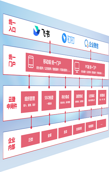 对协作平台提供支持服务,,支持企业应用与协作平台对接,,包含组织同步、、、消息集成、、、待办集成等。。。。支持目前主流的协作平台:钉钉、、、企微和飞书。。。。